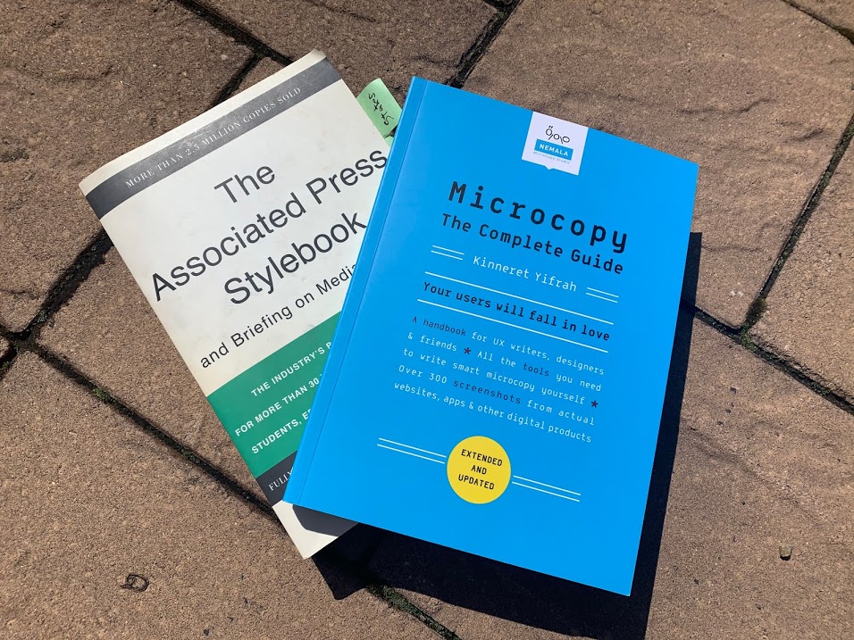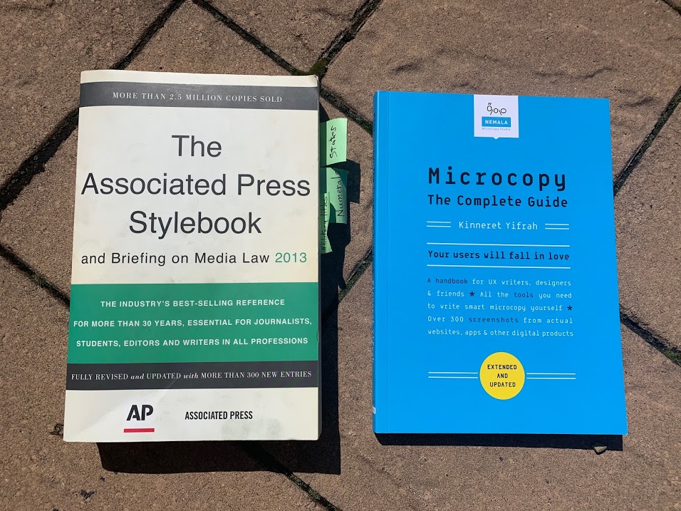 Journalists mainly follow the Associated Press Stylebook, left, to help sharpen their writing. UX writers similarly ensure that product copy follows a content style guide and maintain it.
