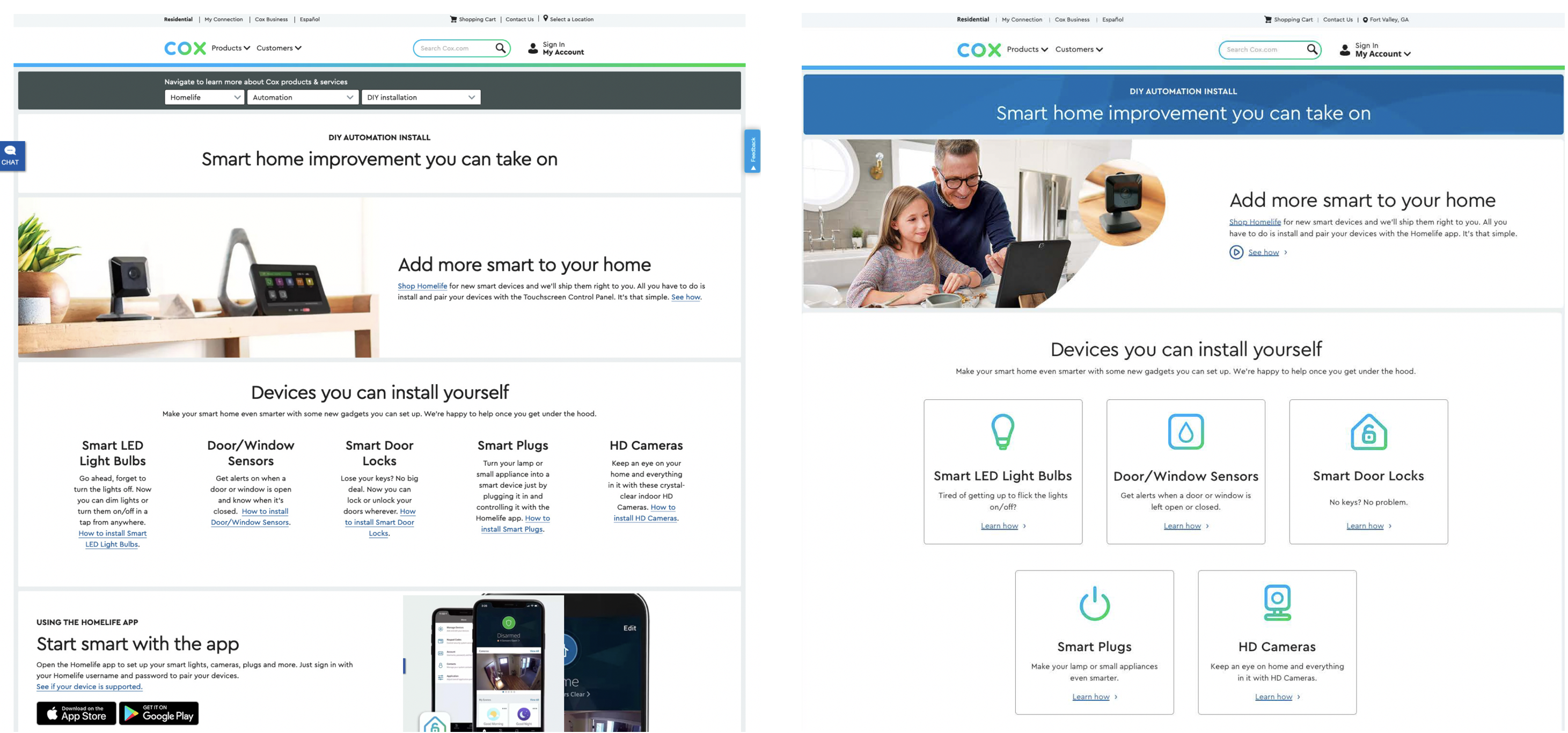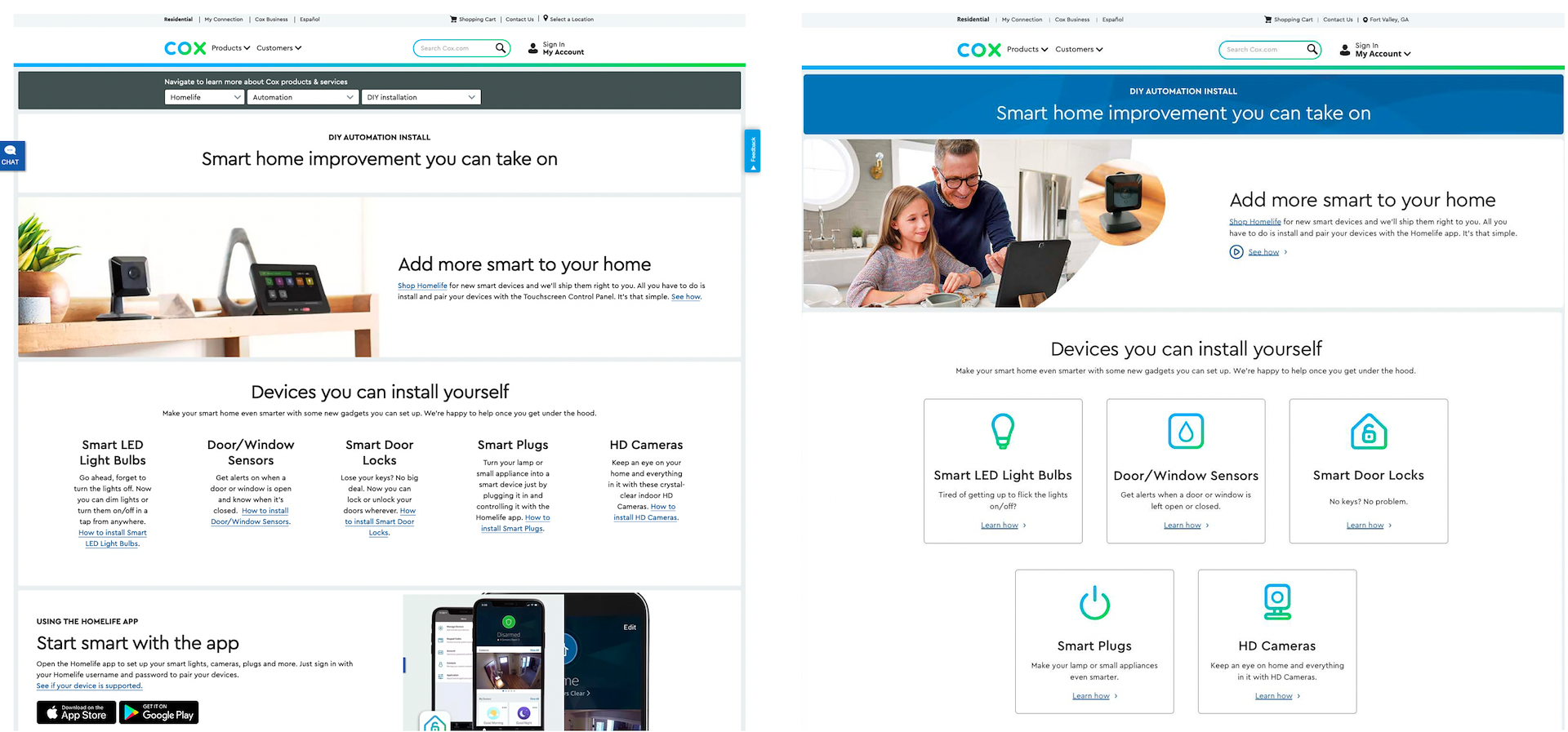 Along with incorporating Cox's brand colors (blue/green), these updates improved the page's UX by looking more scannable.