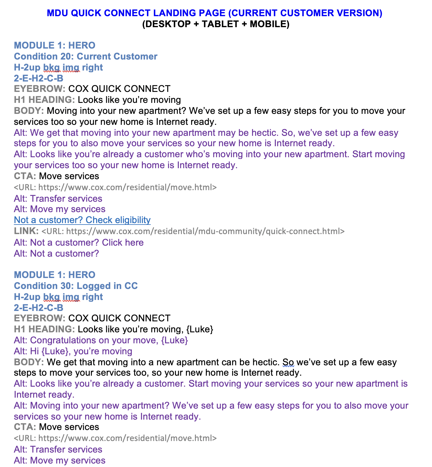 To help customers make the most out of Cox’s products/services, I always advocated for the end user’s experience and kept their pain points in mind, when writing empathetic copy and making the UX smoother. This makes it more likely to increase sales and foster a stronger customer-brand relationship.
