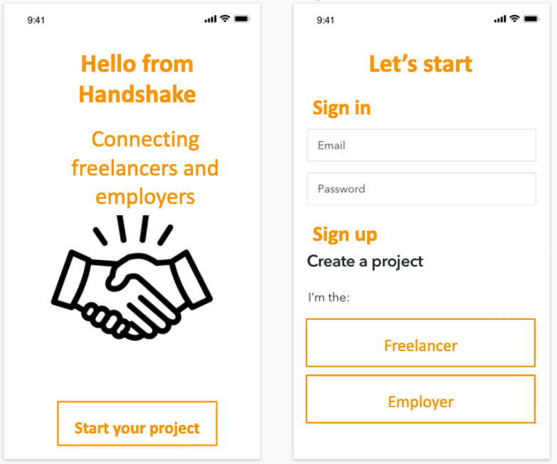 Handshake is an app used by both freelancers and employers (business owners). Freelancers use it to bill business owners and track their hours on a paid project. Business owners use it to pay freelancers and track their progress (paying and tracking).