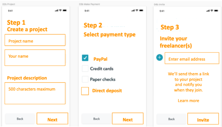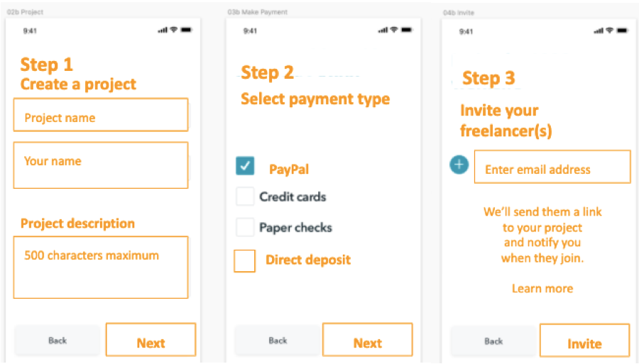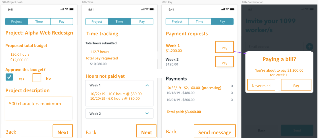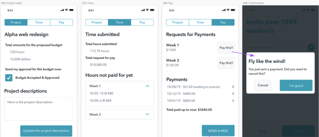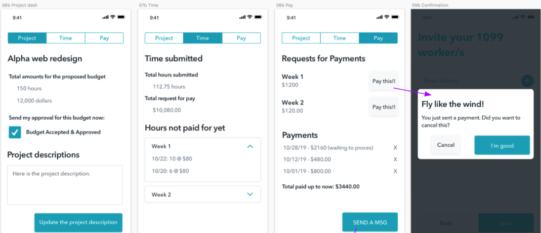 The following are some examples of the screens I rewrote and as labeled, certain screens are for a user who is an employer while other screens are for a user who is a freelancer.