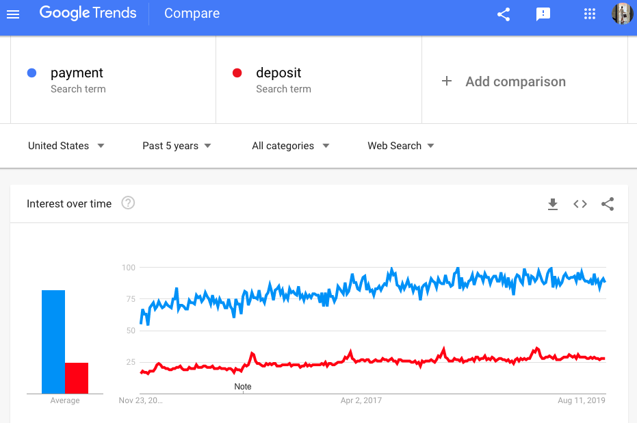 For example, people preferred using the term “payment” over “deposit”.