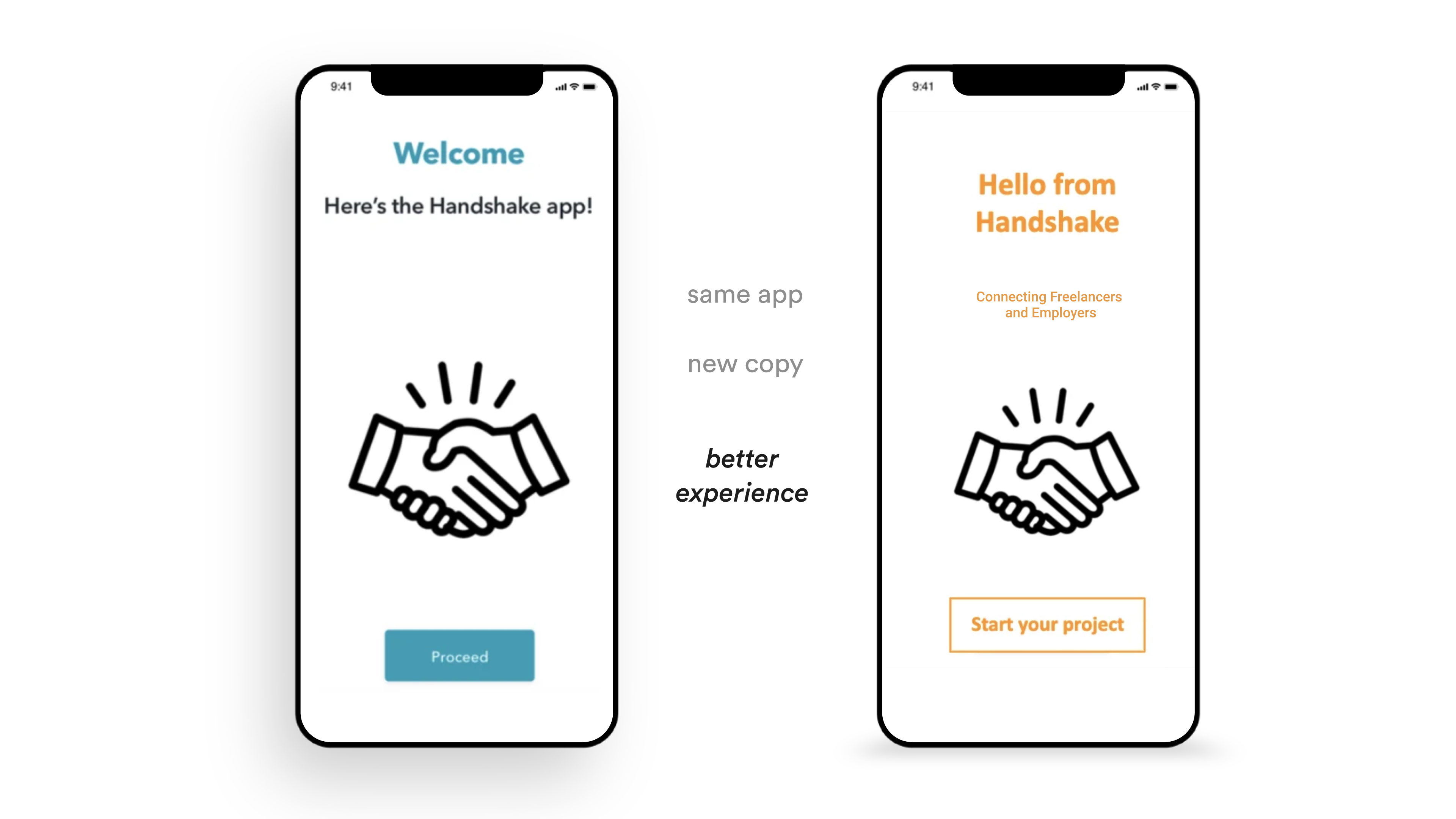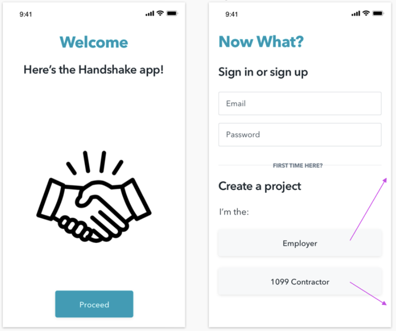 CHALLENGE: The Handshake app lacks clear information hierarchy and has confusing copy with no content style guide.