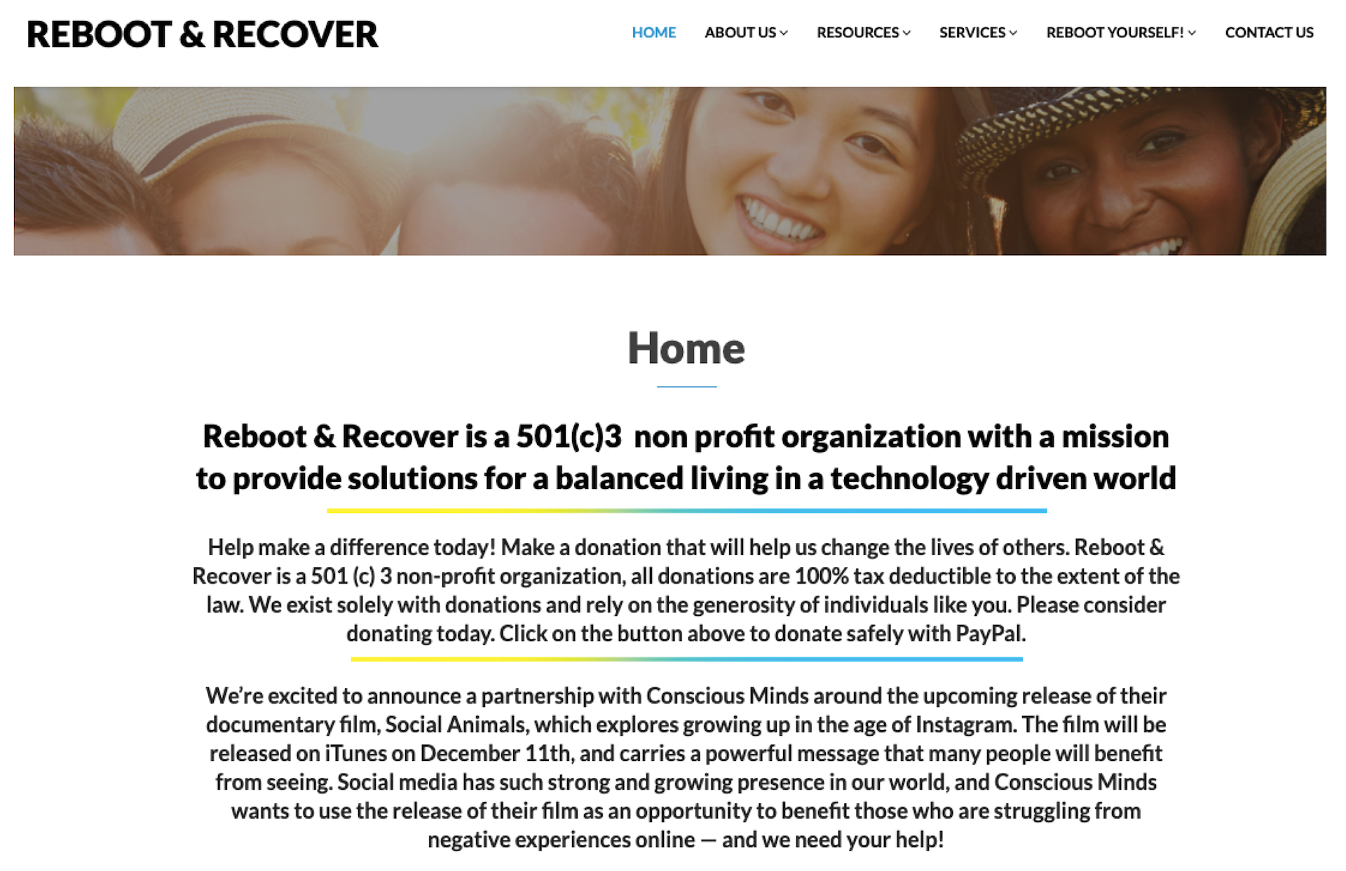 Also, on its top menu, the "Resources" and "Services" links sound synonymous, and users would not immediately understand what "Reboot Yourself!" means — which can cause more confusion. This all helped explain why the website had minimal traffic engagement.