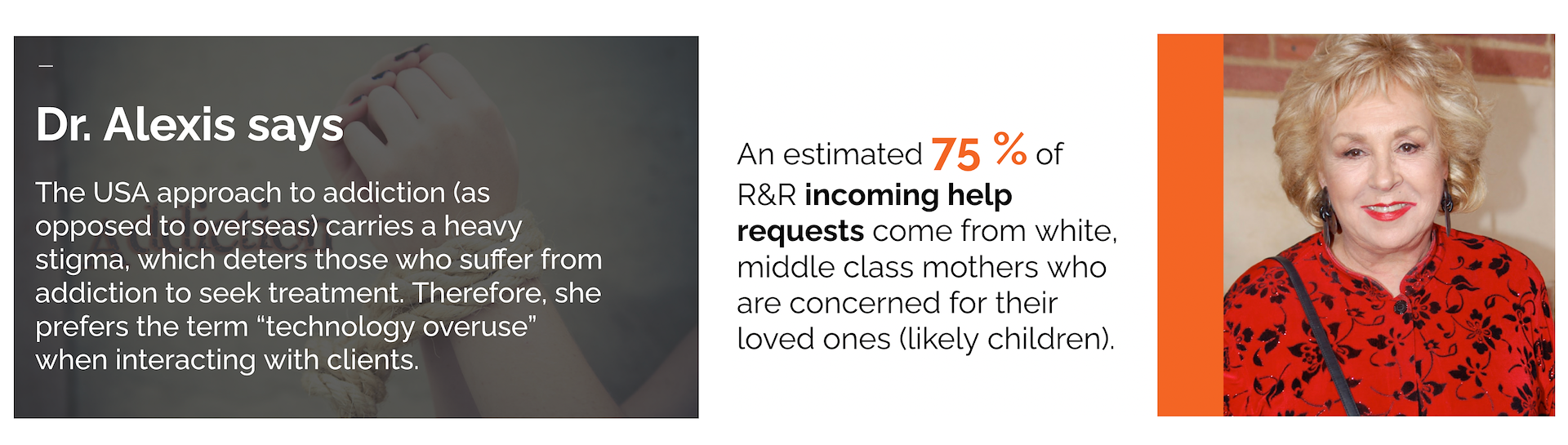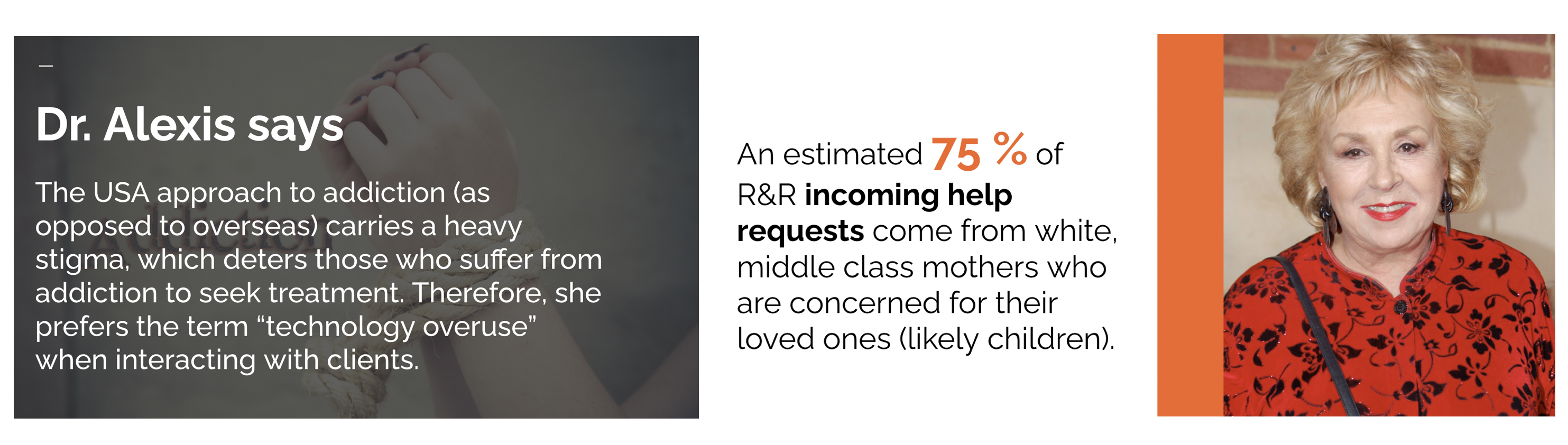 We gained insights on how American society associates addiction with a negative stigma, and how most visitors to the client's website are concerned loved ones.